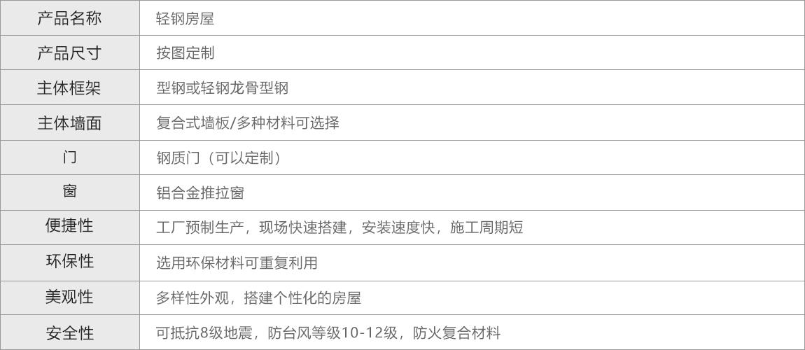 轻钢房屋是采用型钢框架+轻钢填充组合结构房屋主体结构为型钢框架,和采用轻钢组合成的复合式墙板作为围护结构,并在现场进行快速焊接组装。主要特点是结构稳固,坚固抗震,节能环保。适用于住宅公寓、酒店、办公楼、医院、学校。