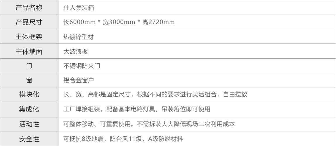 住人集装箱又称为大波浪集装箱,工厂焊接组装配备基本电路,平板车随车吊运输,可满足落地使用,主要特点是整体吊装,结构稳固,实用性高。适用于工地住人、办公室、会议室、安置房、可多功能使用。