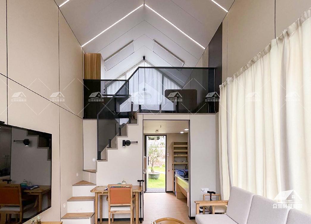 案例简介:东莞南城私人会所主要是轻钢结构与护墙板搭建而成,采用是现代简约风,空间利用率高达90%,灵活划分客厅、茶室、观景卧室等功能区域。民宿采用轻钢结构来搭建,材料工厂预制,现场组装的方式,施工速度快,安全性能优越,轻钢结构具有优秀的抗震抗风性能,可抗9级地震、12级大风,而轻钢材料可回收利用率达90%以上。所以轻钢搭建民宿以其快速施工、环保节能、设计灵活等优势,正成为民宿行业的新宠。