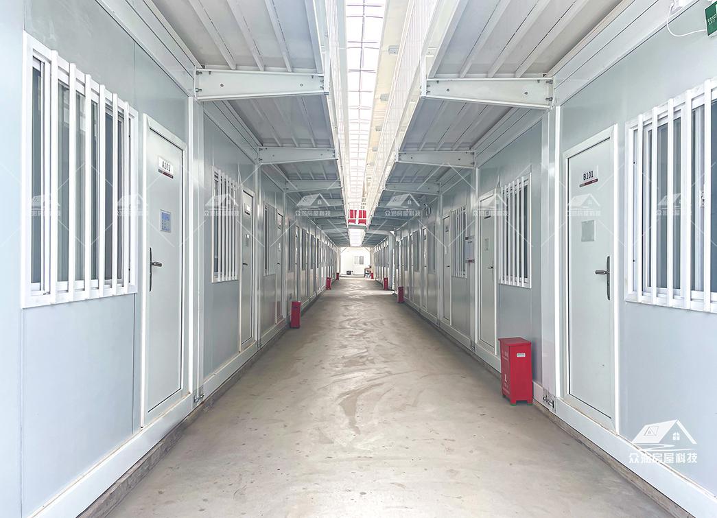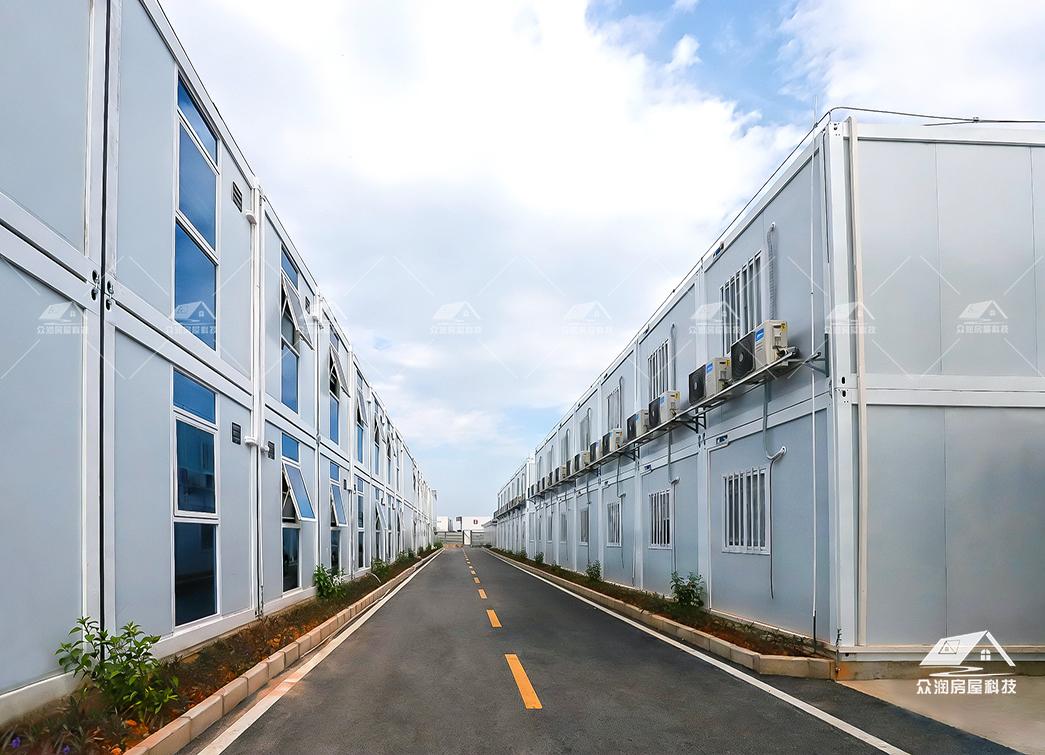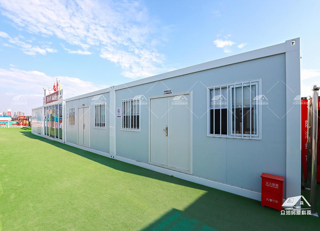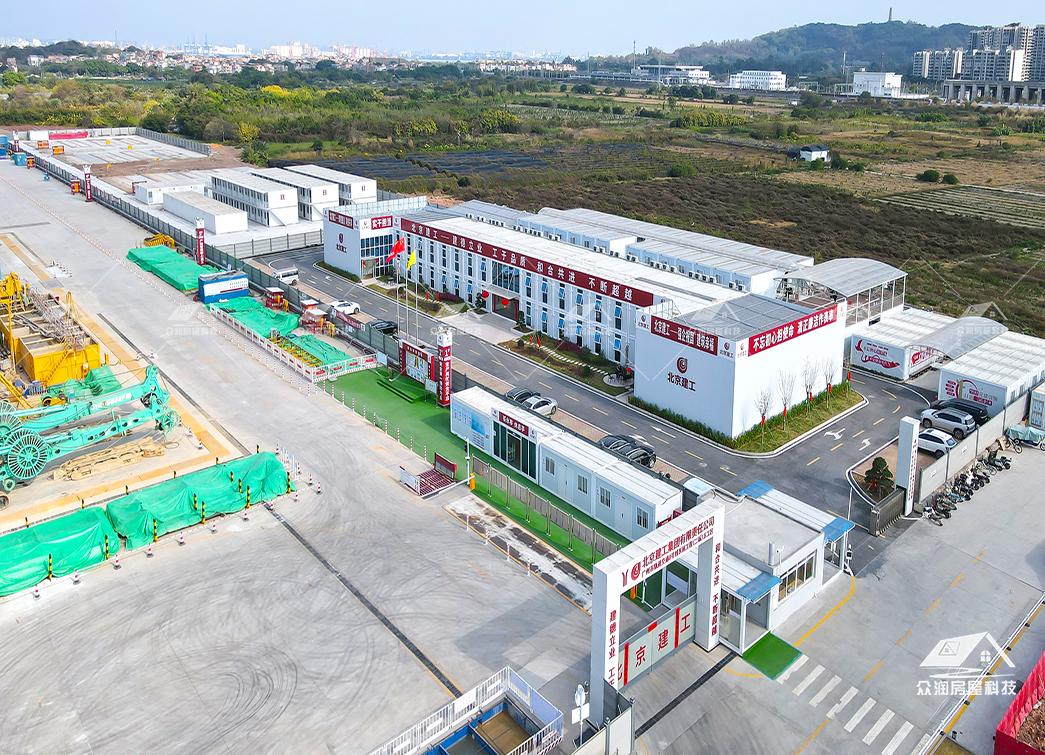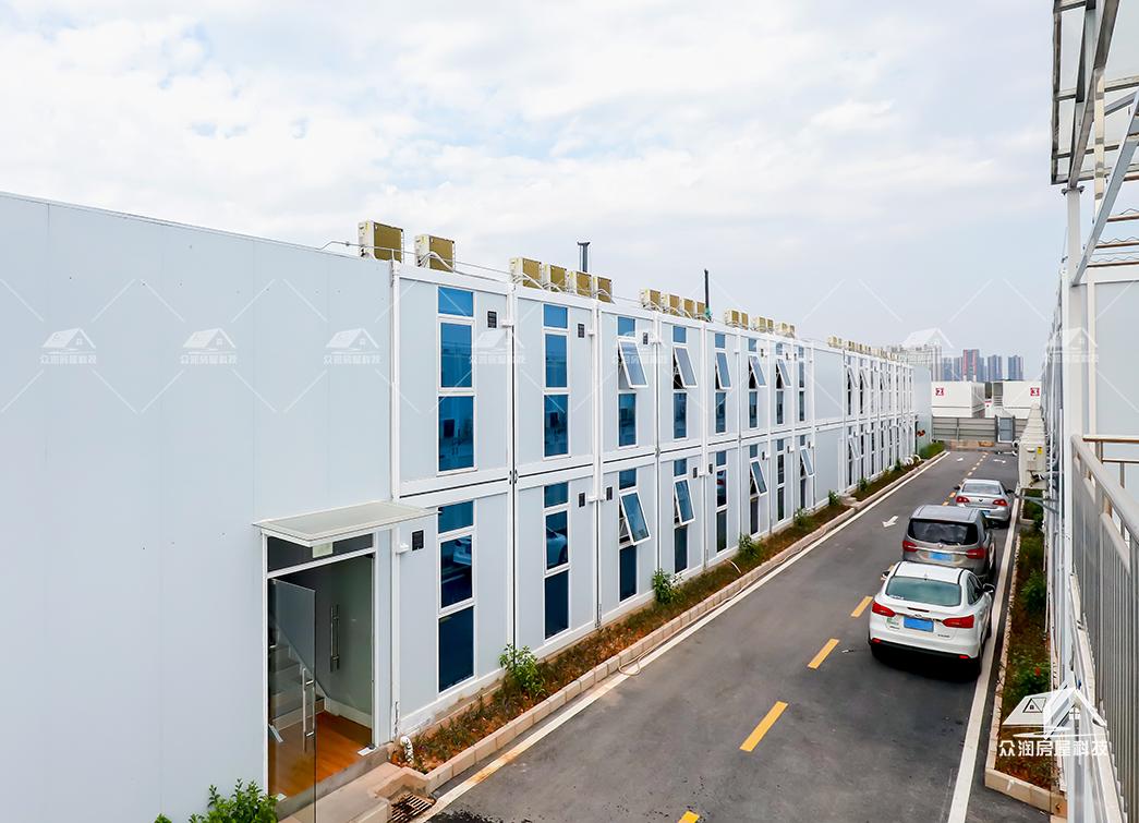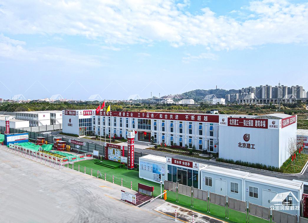 案例简介:广州市轨道交通8号线东延施工总承包项目部以打包箱房为主要载体,搭配福特蓝玻璃窗,整体外观更贴合现代建筑,看上去美观整洁。整个项目采用符合国家绿色建筑标准,防火岩棉夹芯板的环保材料。每个区域根据不同需求来分类,快速搭建出办公区、宿舍楼、会议室、资料室乃至厨房餐厅等独立功能单元。本次项目部落地周期能缩短50%以上,主要是依托工厂规模,大型模块化预制生产模式,预制率可达90%以上,使现场少数工人就能快速安装,真正实现“即到即装、即装即用”。这次项目的模块化建筑不仅是技术革新,更是建筑理念的进化。它以高效、环保、灵活的特点,为现代工程建设提供了全新的解决方案,在提升项目效率的同时,也为建筑行业可持续发展做出了积极贡献。