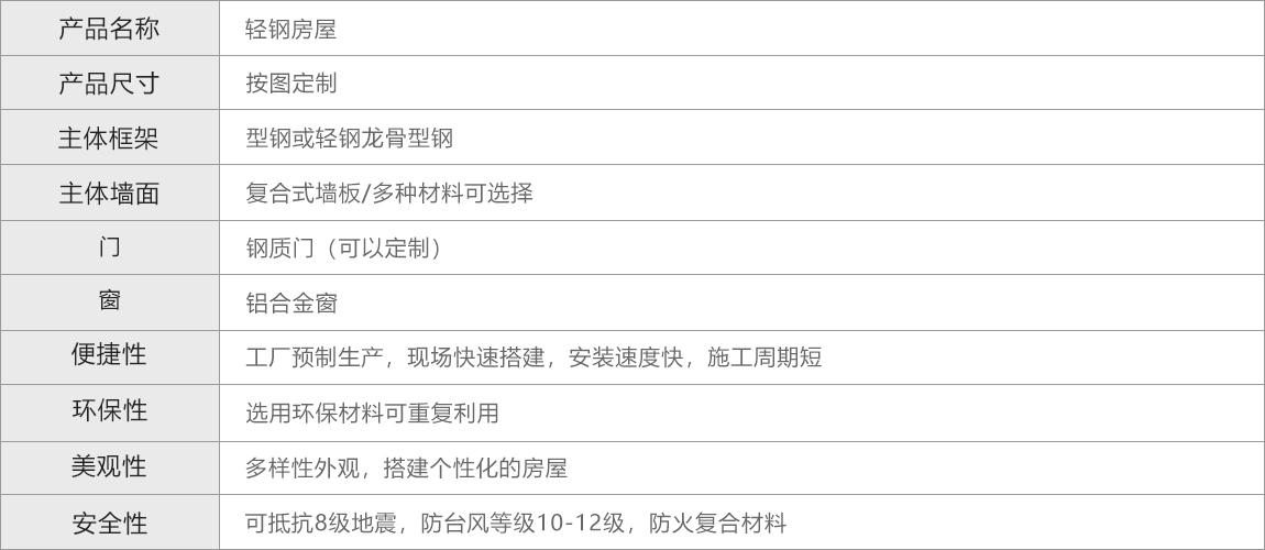 轻钢房屋是采用型钢框架+轻钢填充组合结构房屋主体结构为型钢框架,和采用轻钢组合成的复合式墙板作为围护结构,并在现场进行快速焊接组装。主要特点是结构稳固,坚固抗震,节能环保。适用于住宅公寓、酒店、办公楼、医院、学校。